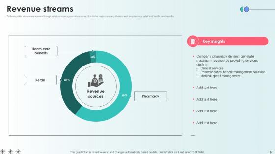 Following slide showcases sources through which company generate revenue. It includes major company division such as pharmacy, retail and health care benefits. Coming up with a presentation necessitates that the majority of the effort goes into the content and the message you intend to convey. The visuals of a PowerPoint presentation can only be effective if it supplements and supports the story that is being told. Keeping this in mind our experts created Revenue Streams Capital Raising Pitch Deck For Health Care Services Ppt Example to reduce the time that goes into designing the presentation. This way, you can concentrate on the message while our designers take care of providing you with the right template for the situation. Following slide showcases sources through which company generate revenue. It includes major company division such as pharmacy, retail and health care benefits.