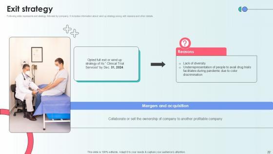 Following slide represents exit strategy followed by company. It includes information about wind up strategy along with reasons and other details. Get a simple yet stunning designed Exit Strategy Capital Raising Pitch Deck For Health Care Services Ppt Example. It is the best one to establish the tone in your meetings. It is an excellent way to make your presentations highly effective. So, download this PPT today from Slidegeeks and see the positive impacts. Our easy-to-edit Exit Strategy Capital Raising Pitch Deck For Health Care Services Ppt Example can be your go-to option for all upcoming conferences and meetings. So, what are you waiting for Grab this template today. Following slide represents exit strategy followed by company. It includes information about wind up strategy along with reasons and other details.