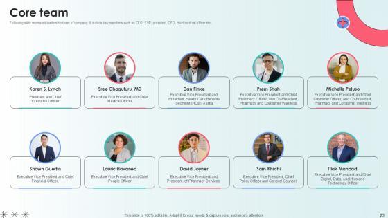 Following slide represent leadership team of company. It include key members such as CEO, EVP, president, CFO, chief medical officer etc. There are so many reasons you need a Core Team Capital Raising Pitch Deck For Health Care Services Ppt Slide. The first reason is you can not spend time making everything from scratch, Thus, Slidegeeks has made presentation templates for you too. You can easily download these templates from our website easily. Following slide represent leadership team of company. It include key members such as CEO, EVP, president, CFO, chief medical officer etc.