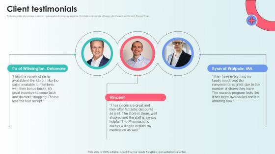 Following slide showcases customer reviews about company services. It includes viewpoints of happy clients such as Vincent, Pa and Ryan. Create an editable Client Testimonials Capital Raising Pitch Deck For Health Care Services Ppt Example that communicates your idea and engages your audience. Whether you are presenting a business or an educational presentation, pre-designed presentation templates help save time. Client Testimonials Capital Raising Pitch Deck For Health Care Services Ppt Example is highly customizable and very easy to edit, covering many different styles from creative to business presentations. Slidegeeks has creative team members who have crafted amazing templates. So, go and get them without any delay. Following slide showcases customer reviews about company services. It includes viewpoints of happy clients such as Vincent, Pa and Ryan.