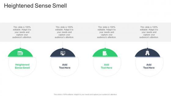 Introducing our well-designed Heightened Sense Smell In Powerpoint And Google Slides Cpb. This PowerPoint design presents information on topics like Heightened Sense Smell. As it is predesigned it helps boost your confidence level. It also makes you a better presenter because of its high-quality content and graphics. This PPT layout can be downloaded and used in different formats like PDF, PNG, and JPG. Not only this, it is available in both Standard Screen and Widescreen aspect ratios for your convenience. Therefore, click on the download button now to persuade and impress your audience. Our Heightened Sense Smell In Powerpoint And Google Slides Cpb are topically designed to provide an attractive backdrop to any subject. Use them to look like a presentation pro.