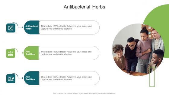 Presenting our innovatively designed set of slides titled Antibacterial Herbs In Powerpoint And Google Slides Cpb. This completely editable PowerPoint graphic exhibits Antibacterial Herbs that will help you convey the message impactfully. It can be accessed with Google Slides and is available in both standard screen and widescreen aspect ratios. Apart from this, you can download this well structured PowerPoint template design in different formats like PDF, JPG, and PNG. So, click the download button now to gain full access to this PPT design. Our Antibacterial Herbs In Powerpoint And Google Slides Cpb are topically designed to provide an attractive backdrop to any subject. Use them to look like a presentation pro.