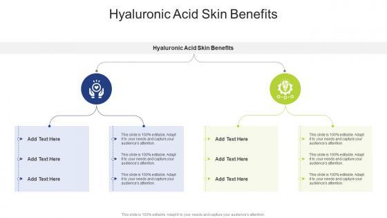 Introducing our well designed Hyaluronic Acid Skin Benefits In Powerpoint And Google Slides Cpb. This PowerPoint design presents information on topics like Hyaluronic Acid Skin Benefits. As it is predesigned it helps boost your confidence level. It also makes you a better presenter because of its high-quality content and graphics. This PPT layout can be downloaded and used in different formats like PDF, PNG, and JPG. Not only this, it is available in both Standard Screen and Widescreen aspect ratios for your convenience. Therefore, click on the download button now to persuade and impress your audience. Our Hyaluronic Acid Skin Benefits In Powerpoint And Google Slides Cpb are topically designed to provide an attractive backdrop to any subject. Use them to look like a presentation pro.