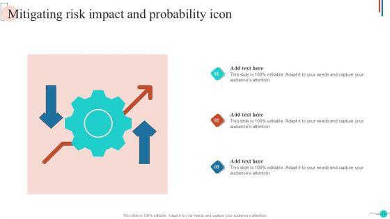 Presenting Mitigating Risk Impact And Probability Icon Background PDF to dispense important information. This template comprises three stages. It also presents valuable insights into the topics including Mitigating Risk Impact, Probability Icon. This is a completely customizable PowerPoint theme that can be put to use immediately. So, download it and address the topic impactfully.