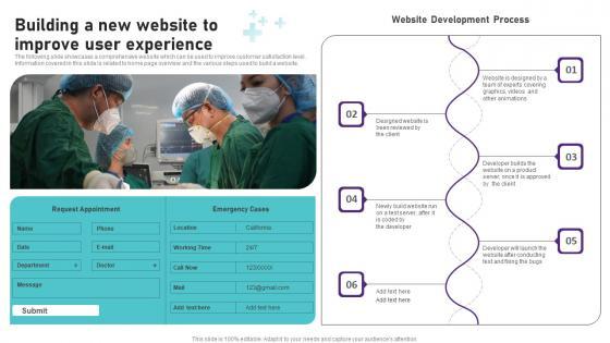 Do you have to make sure that everyone on your team knows about any specific topic I yes, then you should give Building A New Website To Improve Operational Areas Healthcare Graphics PDF a try. Our experts have put a lot of knowledge and effort into creating this impeccable Building A New Website To Improve Operational Areas Healthcare Graphics PDF. You can use this template for your upcoming presentations, as the slides are perfect to represent even the tiniest detail. You can download these templates from the Slidegeeks website and these are easy to edit. So grab these today The following slide showcases a comprehensive website which can be used to improve customer satisfaction level. Information covered in this slide is related to home page overview and the various steps used to build a website.