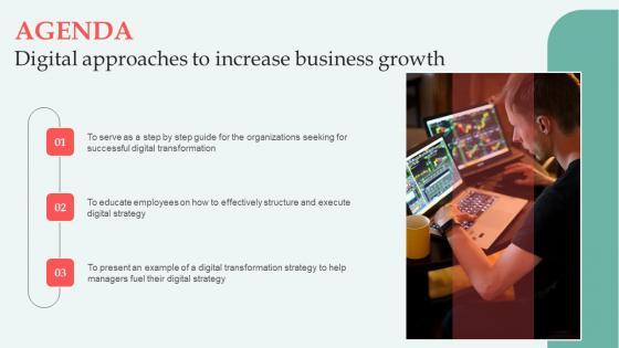 Presenting this PowerPoint presentation, titled Agenda Digital Approaches To Increase Business Growth Introduction Pdf, with topics curated by our researchers after extensive research. This editable presentation is available for immediate download and provides attractive features when used. Download now and captivate your audience. Presenting this Agenda Digital Approaches To Increase Business Growth Introduction Pdf. Our researchers have carefully researched and created these slides with all aspects taken into consideration. This is a completely customizable Agenda Digital Approaches To Increase Business Growth Introduction Pdf that is available for immediate downloading. Download now and make an impact on your audience. Highlight the attractive features available with our PPTs. Our Agenda Digital Approaches To Increase Business Growth Introduction Pdf are topically designed to provide an attractive backdrop to any subject. Use them to look like a presentation pro.