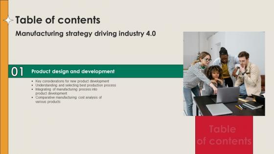 This modern and well-arranged Table Of Contents Manufacturing Strategy Driving Industry 4 0 Ppt Information provides lots of creative possibilities. It is very simple to customize and edit with the Powerpoint Software. Just drag and drop your pictures into the shapes. All facets of this template can be edited with Powerpoint, no extra software is necessary. Add your own material, put your images in the places assigned for them, adjust the colors, and then you can show your slides to the world, with an animated slide included. Our Table Of Contents Manufacturing Strategy Driving Industry 4 0 Ppt Information are topically designed to provide an attractive backdrop to any subject. Use them to look like a presentation pro.