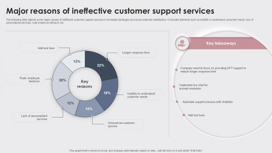 The following slide depicts some major causes of inefficient customer support services to formulate strategies and boost customer satisfaction. It includes elements such as inability to understand consumer needs, lack of personalized services, rude employee behavior etc. Coming up with a presentation necessitates that the majority of the effort goes into the content and the message you intend to convey. The visuals of a PowerPoint presentation can only be effective if it supplements and supports the story that is being told. Keeping this in mind our experts created Major Reasons Of Ineffective Enhancing Customer Experience Ppt Sample to reduce the time that goes into designing the presentation. This way, you can concentrate on the message while our designers take care of providing you with the right template for the situation. The following slide depicts some major causes of inefficient customer support services to formulate strategies and boost customer satisfaction. It includes elements such as inability to understand consumer needs, lack of personalized services, rude employee behavior etc.