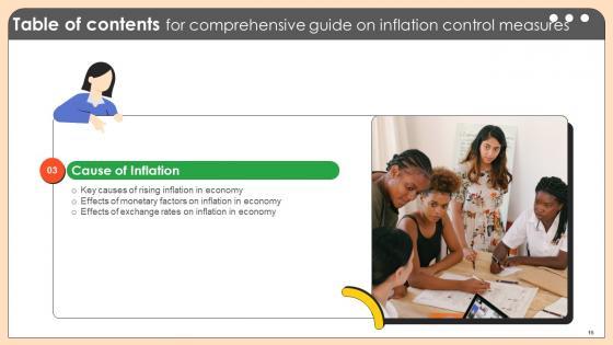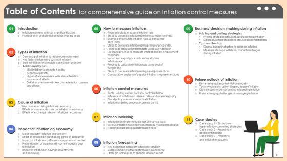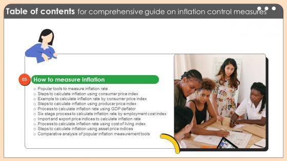 Do you have an important presentation coming up Are you looking for something that will make your presentation stand out from the rest Look no further than Table Of Contents Comprehensive Guide On Inflation Control Measures CM SS V. With our professional designs, you can trust that your presentation will pop and make delivering it a smooth process. And with Slidegeeks, you can trust that your presentation will be unique and memorable. So why wait Grab Table Of Contents Comprehensive Guide On Inflation Control Measures CM SS V today and make your presentation stand out from the rest Our Table Of Contents Comprehensive Guide On Inflation Control Measures CM SS V are topically designed to provide an attractive backdrop to any subject. Use them to look like a presentation pro.