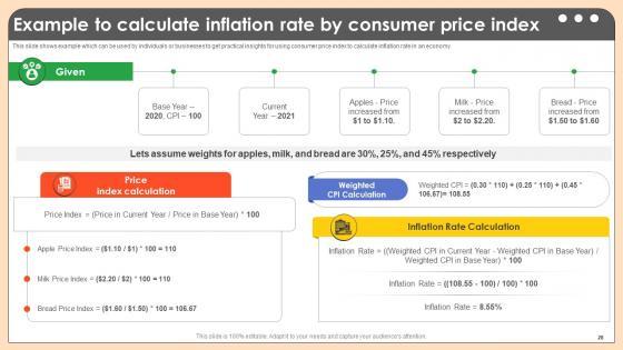 This slide shows step by step process which can be used to calculate inflation rate by using cost of living index. It includes stages such as select year, identify components, assign weights, collect price data, etc. Boost your pitch with our creative Popular Tools To Measure Inflation Rate Comprehensive Guide On Inflation Control CM SS V. Deliver an awe-inspiring pitch that will mesmerize everyone. Using these presentation templates you will surely catch everyones attention. You can browse the ppts collection on our website. We have researchers who are experts at creating the right content for the templates. So you do not have to invest time in any additional work. Just grab the template now and use them. This slide shows step by step process which can be used to calculate inflation rate by using cost of living index. It includes stages such as select year, identify components, assign weights, collect price data, etc.