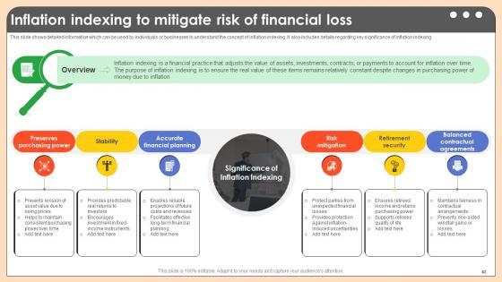 This Comprehensive Guide On Inflation Control Measures CM CD V is a primer on how to capitalize on business opportunities through planning, innovation, and market intelligence. The content-ready format of the complete deck will make your job as a decision-maker a lot easier. Use this ready-made PowerPoint Template to help you outline an extensive and legible plan to capture markets and grow your company on the right path, at an exponential pace. What is even more amazing is that this presentation is completely editable and 100 percent customizable. This seventy three-slide complete deck helps you impress a roomful of people with your expertise in business and even presentation. Craft such a professional and appealing presentation for that amazing recall value. Download now. Grab our professionally created PowerPoint presentation on Change Management Risk Assessment. It is vital in any organization seeking to implement successful and sustainable change initiatives. Change, by its very nature, carries inherent risks, but with proactive planning and strategic risk assessment, these risks can be identified, mitigated, and even turned into opportunities for growth. Moreover, The Risk management strategies guide offers a structured methodology for identifying potential risks associated with change projects. It assists change managers, project leaders, and organizational stakeholders in understanding and evaluating the likelihood and impact of various risks that impede change efforts. From resistance to technology integration challenges, from communication breakdowns to unforeseen financial implications, this guide addresses the full spectrum of change-related risks. Furthermore, by utilizing practical tools, frameworks, and checklists, the Risk mitigation PPT templates enable organizations to anticipate potential pitfalls, establish contingency plans, and ensure that change initiatives stay on course. Whether a minor process adjustment or a sweeping organizational transformation, this guide equips you with the knowledge and strategies to proactively manage and mitigate change-related risks, increasing the likelihood of a successful change journey. Download now.
