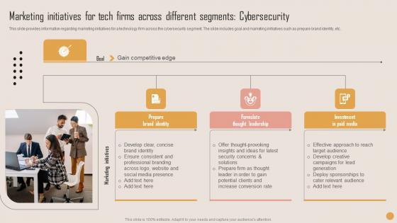 This slide provides information regarding marketing initiatives for a technology firm across the cybersecurity segment. The slide includes goal and marketing initiatives such as prepare brand identity, etc. Want to ace your presentation in front of a live audience Our Marketing Initiatives Tech Firms Playbook For Strategic Actions To Improve IT Performance Clipart Pdf can help you do that by engaging all the users towards you. Slidegeeks experts have put their efforts and expertise into creating these impeccable powerpoint presentations so that you can communicate your ideas clearly. Moreover, all the templates are customizable, and easy to edit and downloadable. Use these for both personal and commercial use. This slide provides information regarding marketing initiatives for a technology firm across the cybersecurity segment. The slide includes goal and marketing initiatives such as prepare brand identity, etc.