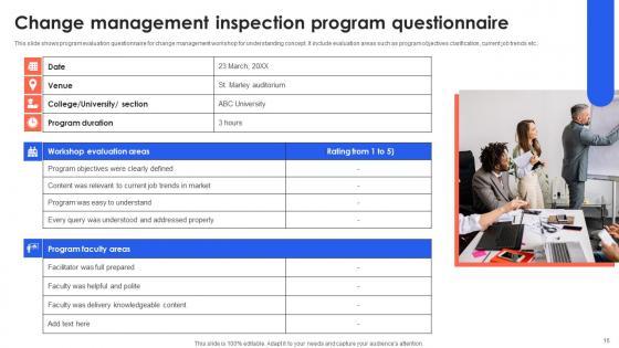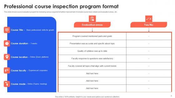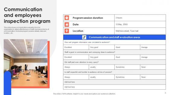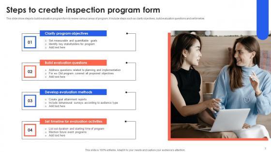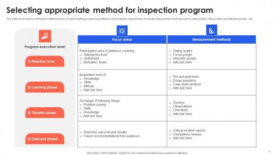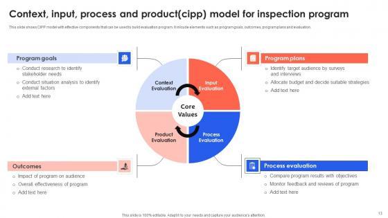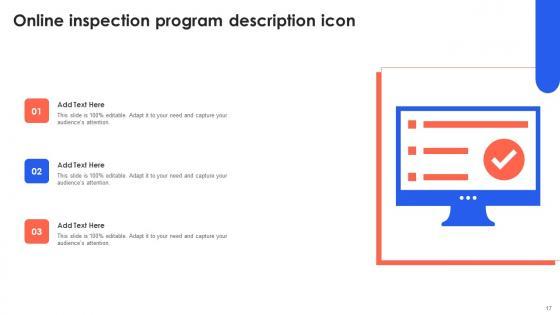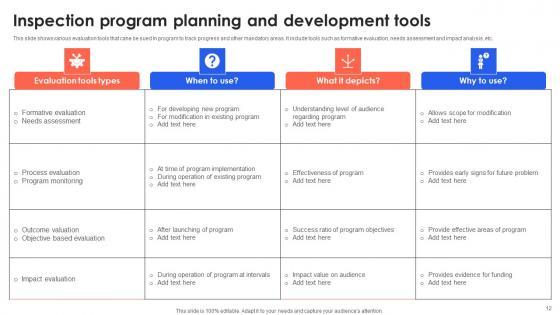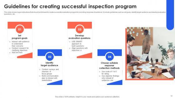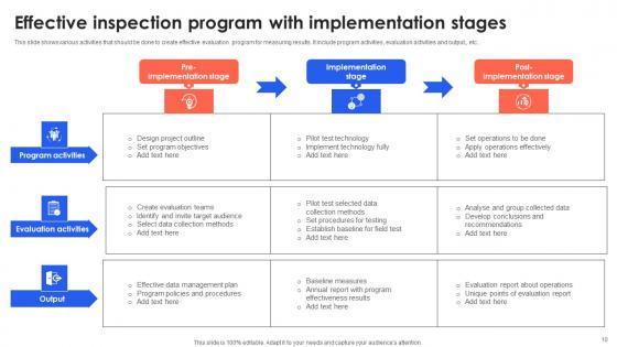 This Inspection Program Ppt Powerpoint Presentation Complete Deck With Slides acts as backup support for your ideas, vision, thoughts, etc. Use it to present a thorough understanding of the topic. This PPT slideshow can be utilized for both in-house and outside presentations depending upon your needs and business demands. Entailing twenty slides with a consistent design and theme, this template will make a solid use case. As it is intuitively designed, it suits every business vertical and industry. All you have to do is make a few tweaks in the content or any other component to design unique presentations. The biggest advantage of this complete deck is that it can be personalized multiple times once downloaded. The color, design, shapes, and other elements are free to modify to add personal touches. You can also insert your logo design in this PPT layout. Therefore a well-thought and crafted presentation can be delivered with ease and precision by downloading this Inspection Program Ppt Powerpoint Presentation Complete Deck With Slides PPT slideshow. Our Inspection Program Ppt Powerpoint Presentation Complete Deck With Slides are topically designed to provide an attractive backdrop to any subject. Use them to look like a presentation pro.
