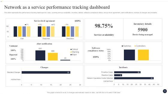 This slide represents the performance tracking dashboard for naas, covering service availability, inventory details, software compliance status, service level agreement, alert notifications, number of changes and incidents. Slidegeeks is one of the best resources for PowerPoint templates. You can download easily and regulate Integrating Naas Service Model To Enhance Network As A Service Performance Topics PDF for your personal presentations from our wonderful collection. A few clicks is all it takes to discover and get the most relevant and appropriate templates. Use our Templates to add a unique zing and appeal to your presentation and meetings. All the slides are easy to edit and you can use them even for advertisement purposes.