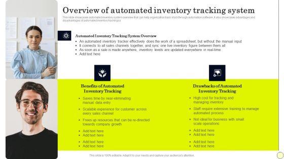 This slide showcases automated inventory system overview that can help organization track stock through automation software. It also showcases advantages and disadvantages of automated inventory trackingss. Whether you have daily or monthly meetings, a brilliant presentation is necessary. Strategies To Order And Manage Ideal Inventory Levels Overview Of Automated Inventory Diagrams PDF can be your best option for delivering a presentation. Represent everything in detail using Strategies To Order And Manage Ideal Inventory Levels Overview Of Automated Inventory Diagrams PDF and make yourself stand out in meetings. The template is versatile and follows a structure that will cater to your requirements. All the templates prepared by Slidegeeks are easy to download and edit. Our research experts have taken care of the corporate themes as well. So, give it a try and see the results.