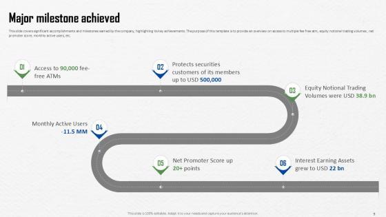 The slide highlights the various milestones achieved by a company such as large number of operating countries and employees, good revenue growth, etc. Do you have to make sure that everyone on your team knows about any specific topic I yes, then you should give Major Milestones Achieved Investment Company Investor Funding Elevator Ppt Slide a try. Our experts have put a lot of knowledge and effort into creating this impeccable Major Milestones Achieved Investment Company Investor Funding Elevator Ppt Slide. You can use this template for your upcoming presentations, as the slides are perfect to represent even the tiniest detail. You can download these templates from the Slidegeeks website and these are easy to edit. So grab these today The slide highlights the various milestones achieved by a company such as large number of operating countries and employees, good revenue growth, etc.