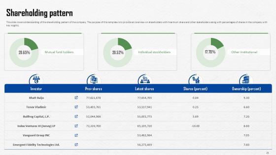 The slide mentions the number of shares each business partner holds, such as Global Founders, Kinnevik, United Internet, Access Industries, etc. Find highly impressive Shareholding Pattern Investment Company Investor Funding Elevator Ppt Sample on Slidegeeks to deliver a meaningful presentation. You can save an ample amount of time using these presentation templates. No need to worry to prepare everything from scratch because Slidegeeks experts have already done a huge research and work for you. You need to download Shareholding Pattern Investment Company Investor Funding Elevator Ppt Sample for your upcoming presentation. All the presentation templates are 100 percent editable and you can change the color and personalize the content accordingly. Download now The slide mentions the number of shares each business partner holds, such as Global Founders, Kinnevik, United Internet, Access Industries, etc.