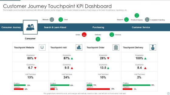 This slide covers a touchpoint dashboard with different customer journey stages. It also includes a detailed evaluation of each stage on the basis of experience, importance, etc. Deliver and pitch your topic in the best possible manner with this Online Customer Interaction KPI Dashboard For Tracking Consumer Journey Touchpoints Information PDF. Use them to share invaluable insights on Consumer Journey, Purchasing, Consumer Service and impress your audience. This template can be altered and modified as per your expectations. So, grab it now.