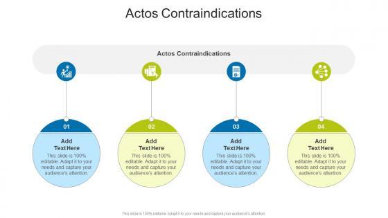 Introducing our well-designed Actos Contraindications In Powerpoint And Google Slides Cpb. This PowerPoint design presents information on topics like Actos Contraindications. As it is predesigned it helps boost your confidence level. It also makes you a better presenter because of its high-quality content and graphics. This PPT layout can be downloaded and used in different formats like PDF, PNG, and JPG. Not only this, it is available in both Standard Screen and Widescreen aspect ratios for your convenience. Therefore, click on the download button now to persuade and impress your audience. Our Actos Contraindications In Powerpoint And Google Slides Cpb are topically designed to provide an attractive backdrop to any subject. Use them to look like a presentation pro.