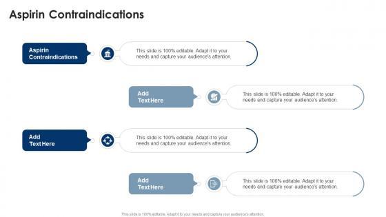 Presenting our innovatively designed set of slides titled Aspirin Contraindications In Powerpoint And Google Slides Cpb. This completely editable PowerPoint graphic exhibits Aspirin Contraindications that will help you convey the message impactfully. It can be accessed with Google Slides and is available in both standard screen and widescreen aspect ratios. Apart from this, you can download this well structured PowerPoint template design in different formats like PDF, JPG, and PNG. So, click the download button now to gain full access to this PPT design. Our Aspirin Contraindications In Powerpoint And Google Slides Cpb are topically designed to provide an attractive backdrop to any subject. Use them to look like a presentation pro.