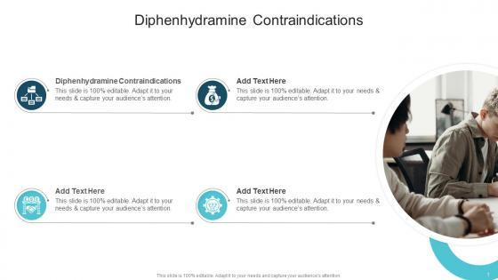 Presenting our innovatively-designed set of slides titled Diphenhydramine Contraindications In Powerpoint And Google Slides Cpb. This completely editable PowerPoint graphic exhibits Diphenhydramine Contraindications that will help you convey the message impactfully. It can be accessed with Google Slides and is available in both standard screen and widescreen aspect ratios. Apart from this, you can download this well-structured PowerPoint template design in different formats like PDF, JPG, and PNG. So, click the download button now to gain full access to this PPT design. Our Diphenhydramine Contraindications In Powerpoint And Google Slides Cpb are topically designed to provide an attractive backdrop to any subject. Use them to look like a presentation pro.