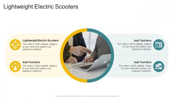 Presenting our innovatively designed set of slides titled Lightweight Electric Scooters In Powerpoint And Google Slides Cpb. This completely editable PowerPoint graphic exhibits Lightweight Electric Scooters that will help you convey the message impactfully. It can be accessed with Google Slides and is available in both standard screen and widescreen aspect ratios. Apart from this, you can download this well structured PowerPoint template design in different formats like PDF, JPG, and PNG. So, click the download button now to gain full access to this PPT design. Our Lightweight Electric Scooters In Powerpoint And Google Slides Cpb are topically designed to provide an attractive backdrop to any subject. Use them to look like a presentation pro.