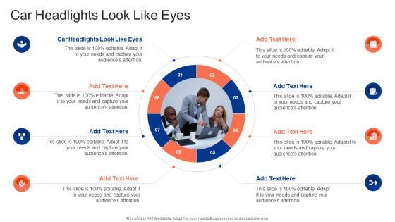 Presenting our innovatively-designed set of slides titled Car Headlights Look Like Eyes In Powerpoint And Google Slides Cpb. This completely editable PowerPoint graphic exhibits Car Headlights Look Like Eyes that will help you convey the message impactfully. It can be accessed with Google Slides and is available in both standard screen and widescreen aspect ratios. Apart from this, you can download this well-structured PowerPoint template design in different formats like PDF, JPG, and PNG. So, click the download button now to gain full access to this PPT design. Our Car Headlights Look Like Eyes In Powerpoint And Google Slides Cpb are topically designed to provide an attractive backdrop to any subject. Use them to look like a presentation pro.