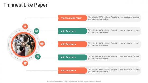 Presenting our innovatively designed set of slides titled Thinnest Like Paper In Powerpoint And Google Slides Cpb. This completely editable PowerPoint graphic exhibits Thinnest Like Paper that will help you convey the message impactfully. It can be accessed with Google Slides and is available in both standard screen and widescreen aspect ratios. Apart from this, you can download this well structured PowerPoint template design in different formats like PDF, JPG, and PNG. So, click the download button now to gain full access to this PPT design. Our Thinnest Like Paper In Powerpoint And Google Slides Cpb are topically designed to provide an attractive backdrop to any subject. Use them to look like a presentation pro.