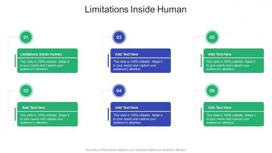 Presenting our innovatively designed set of slides titled Limitations Inside Human In Powerpoint And Google Slides Cpb This completely editable PowerPoint graphic exhibits Limitations Inside Human that will help you convey the message impactfully. It can be accessed with Google Slides and is available in both standard screen and widescreen aspect ratios. Apart from this, you can download this well structured PowerPoint template design in different formats like PDF, JPG, and PNG. So, click the download button now to gain full access to this PPT design. Our Limitations Inside Human In Powerpoint And Google Slides Cpb are topically designed to provide an attractive backdrop to any subject. Use them to look like a presentation pro.