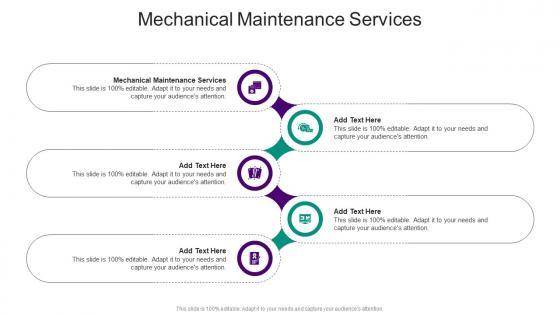 Introducing our well designed Mechanical Maintenance Services In Powerpoint And Google Slides Cpb. This PowerPoint design presents information on topics like Mechanical Maintenance Services. As it is predesigned it helps boost your confidence level. It also makes you a better presenter because of its high quality content and graphics. This PPT layout can be downloaded and used in different formats like PDF, PNG, and JPG. Not only this, it is available in both Standard Screen and Widescreen aspect ratios for your convenience. Therefore, click on the download button now to persuade and impress your audience. Our Mechanical Maintenance Services In Powerpoint And Google Slides Cpb are topically designed to provide an attractive backdrop to any subject. Use them to look like a presentation pro.