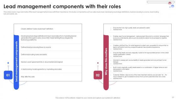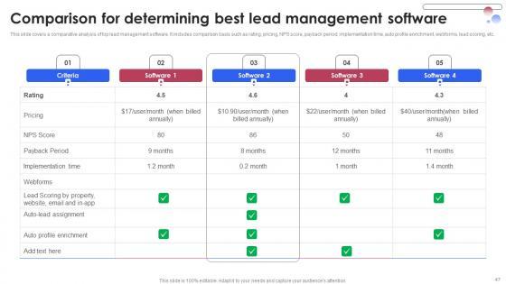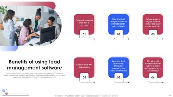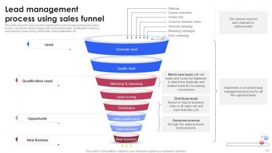 This sixty five slide Various Techniques For Managing Qualified Leads Ppt PowerPoint Presentation Complete Deck With Slides is your content ready tool to impress the stakeholders with your business planning and its manner of execution. Showcase your ideas and how you plan to make them real in detail with this PPT Template Bundle. The slides have the conceptual bandwidth to present the crucial aspects of your plan, such as funding, marketing, resource allocation, timeline, roadmap, and more. When you present your plans with this PPT Layout, the stakeholders are sure to come on board because you will be able to present a succinct, thought-out, winning project. Download this Complete Deck now to take control into your hands. The 100 percent customizable offer is just too good to be resisted. Our Various Techniques For Managing Qualified Leads Ppt PowerPoint Presentation Complete Deck With Slides are topically designed to provide an attractive backdrop to any subject. Use them to look like a presentation pro.