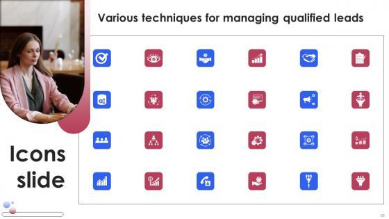 Introducing our well designed Icons Slide Various Techniques For Managing Qualified Leads Clipart PDF set of slides. The slide displays editable icons to enhance your visual presentation. The icons can be edited easily. So customize according to your business to achieve a creative edge. Download and share it with your audience. Our Icons Slide Various Techniques For Managing Qualified Leads Clipart PDF are topically designed to provide an attractive backdrop to any subject. Use them to look like a presentation pro.