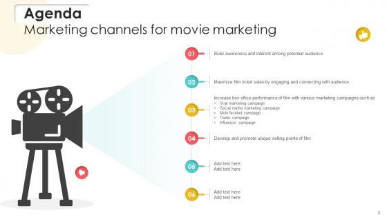 Find a pre-designed and impeccable Agenda Marketing Channels For Movie Marketing Strategy SS V. The templates can ace your presentation without additional effort. You can download these easy-to-edit presentation templates to make your presentation stand out from others. So, what are you waiting for Download the template from Slidegeeks today and give a unique touch to your presentation. Our Agenda Marketing Channels For Movie Marketing Strategy SS V are topically designed to provide an attractive backdrop to any subject. Use them to look like a presentation pro.