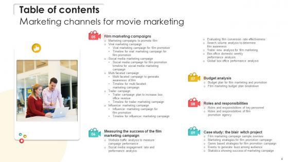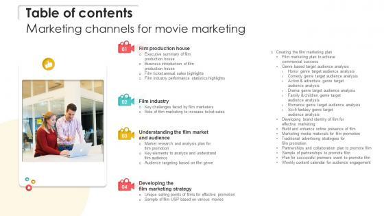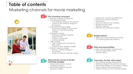 Slidegeeks has constructed Table Of Contents For Marketing Channels For Movie Marketing Strategy SS V after conducting extensive research and examination. These presentation templates are constantly being generated and modified based on user preferences and critiques from editors. Here, you will find the most attractive templates for a range of purposes while taking into account ratings and remarks from users regarding the content. This is an excellent jumping-off point to explore our content and will give new users an insight into our top-notch PowerPoint Templates. Our Table Of Contents For Marketing Channels For Movie Marketing Strategy SS V are topically designed to provide an attractive backdrop to any subject. Use them to look like a presentation pro.