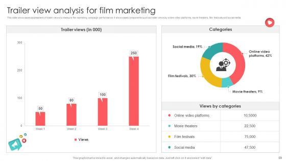 This slide showcases assessment of trailer views to measure film marketing campaign performance. It showcases components such as trailer views by online video platforms, movie theaters, film festivals and social media. Explore a selection of the finest Marketing Channels For Movie Trailer View Analysis For Film Marketing Strategy SS V here. With a plethora of professionally designed and pre-made slide templates, you can quickly and easily find the right one for your upcoming presentation. You can use our Marketing Channels For Movie Trailer View Analysis For Film Marketing Strategy SS V to effectively convey your message to a wider audience. Slidegeeks has done a lot of research before preparing these presentation templates. The content can be personalized and the slides are highly editable. Grab templates today from Slidegeeks. This slide showcases assessment of trailer views to measure film marketing campaign performance. It showcases components such as trailer views by online video platforms, movie theaters, film festivals and social media.