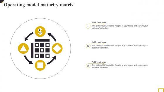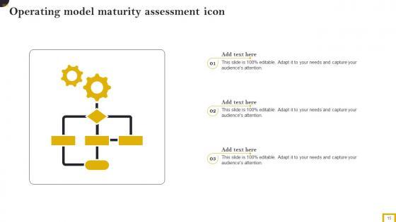 Showcasing this set of slides titled Operating Model Maturity Assessment Icon Information Pdf. The topics addressed in these templates are Operating Model, Maturity Assessment, Icon. All the content presented in this PPT design is completely editable. Download it and make adjustments in color, background, font etc. as per your unique business setting. Our Operating Model Maturity Assessment Icon Information Pdf are topically designed to provide an attractive backdrop to any subject. Use them to look like a presentation pro.