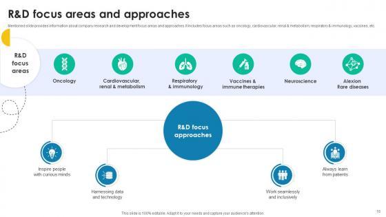 Mentioned slide provides information about company research and development focus areas and approaches. It includes focus areas such as oncology, cardiovascular, renal and metabolism, respiratory and immunology, vaccines, etc. Take your projects to the next level with our ultimate collection of R And D Focus Areas And Approaches Medical Research And Development Company Profile CP SS V. Slidegeeks has designed a range of layouts that are perfect for representing task or activity duration, keeping track of all your deadlines at a glance. Tailor these designs to your exact needs and give them a truly corporate look with your own brand colors they will make your projects stand out from the rest Mentioned slide provides information about company research and development focus areas and approaches. It includes focus areas such as oncology, cardiovascular, renal and metabolism, respiratory and immunology, vaccines, etc.