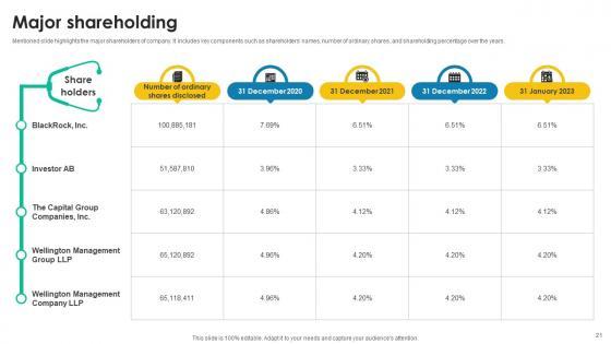 Mentioned slide highlights the major shareholders of company. It includes key components such as shareholders names, number of ordinary shares, and shareholding percentage over the years. This Major Shareholding Medical Research And Development Company Profile CP SS V is perfect for any presentation, be it in front of clients or colleagues. It is a versatile and stylish solution for organizing your meetings. The Major Shareholding Medical Research And Development Company Profile CP SS V features a modern design for your presentation meetings. The adjustable and customizable slides provide unlimited possibilities for acing up your presentation. Slidegeeks has done all the homework before launching the product for you. So, do not wait, grab the presentation templates today Mentioned slide highlights the major shareholders of company. It includes key components such as shareholders names, number of ordinary shares, and shareholding percentage over the years.