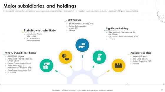 Mentioned slide provides information about company major subsidiaries and holdings. It includes wholly owned, partially owned subsidiaries, joint venture, significant holding, and associate holding. Welcome to our selection of the Major Subsidiaries And Holdings Medical Research And Development Company Profile CP SS V. These are designed to help you showcase your creativity and bring your sphere to life. Planning and Innovation are essential for any business that is just starting out. This collection contains the designs that you need for your everyday presentations. All of our PowerPoints are 100 percent editable, so you can customize them to suit your needs. This multi-purpose template can be used in various situations. Grab these presentation templates today. Mentioned slide provides information about company major subsidiaries and holdings. It includes wholly owned, partially owned subsidiaries, joint venture, significant holding, and associate holding.