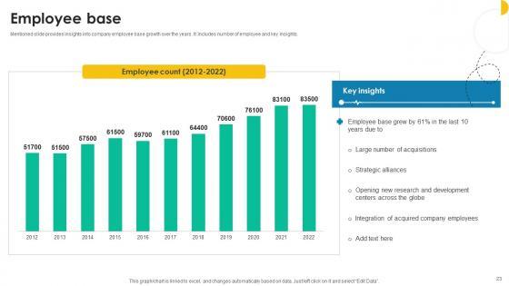 Mentioned slide provides insights into company employee base growth over the years. It includes number of employee and key insights. Whether you have daily or monthly meetings, a brilliant presentation is necessary. Employee Base Medical Research And Development Company Profile CP SS V can be your best option for delivering a presentation. Represent everything in detail using Employee Base Medical Research And Development Company Profile CP SS V and make yourself stand out in meetings. The template is versatile and follows a structure that will cater to your requirements. All the templates prepared by Slidegeeks are easy to download and edit. Our research experts have taken care of the corporate themes as well. So, give it a try and see the results. Mentioned slide provides insights into company employee base growth over the years. It includes number of employee and key insights.