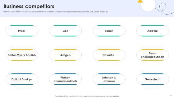 Mentioned slide outlines various business competitors in of healthcare company. It includes competitors such as Pfizer, GSK, Sanofi, Amgen, etc. Create an editable Business Competitors Medical Research And Development Company Profile CP SS V that communicates your idea and engages your audience. Whether you are presenting a business or an educational presentation, pre-designed presentation templates help save time. Business Competitors Medical Research And Development Company Profile CP SS V is highly customizable and very easy to edit, covering many different styles from creative to business presentations. Slidegeeks has creative team members who have crafted amazing templates. So, go and get them without any delay. Mentioned slide outlines various business competitors in of healthcare company. It includes competitors such as Pfizer, GSK, Sanofi, Amgen, etc.