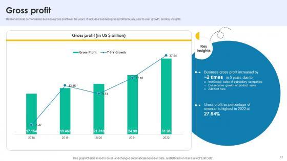Mentioned slide demonstrates business gross profit over the years. It includes business gross profit annually, year to year growth, and key insights. Formulating a presentation can take up a lot of effort and time, so the content and message should always be the primary focus. The visuals of the PowerPoint can enhance the presenters message, so our Gross Profit Medical Research And Development Company Profile CP SS V was created to help save time. Instead of worrying about the design, the presenter can concentrate on the message while our designers work on creating the ideal templates for whatever situation is needed. Slidegeeks has experts for everything from amazing designs to valuable content, we have put everything into Gross Profit Medical Research And Development Company Profile CP SS V. Mentioned slide demonstrates business gross profit over the years. It includes business gross profit annually, year to year growth, and key insights.