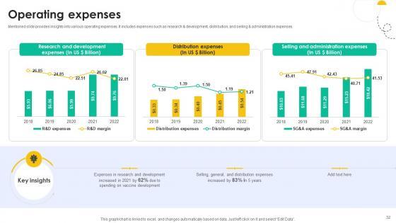 Mentioned slide provides insights into various operating expenses. It includes expenses such as research and development, distribution, and selling and administration expenses. The Operating Expenses Medical Research And Development Company Profile CP SS V is a compilation of the most recent design trends as a series of slides. It is suitable for any subject or industry presentation, containing attractive visuals and photo spots for businesses to clearly express their messages. This template contains a variety of slides for the user to input data, such as structures to contrast two elements, bullet points, and slides for written information. Slidegeeks is prepared to create an impression. Mentioned slide provides insights into various operating expenses. It includes expenses such as research and development, distribution, and selling and administration expenses.
