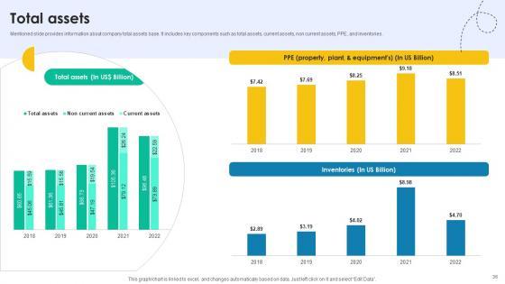 Mentioned slide provides information about company total assets base. It includes key components such as total assets, current assets, non current assets, PPE, and inventories. From laying roadmaps to briefing everything in detail, our templates are perfect for you. You can set the stage with your presentation slides. All you have to do is download these easy-to-edit and customizable templates. Total Assets Medical Research And Development Company Profile CP SS V will help you deliver an outstanding performance that everyone would remember and praise you for. Do download this presentation today. Mentioned slide provides information about company total assets base. It includes key components such as total assets, current assets, non current assets, PPE, and inventories.