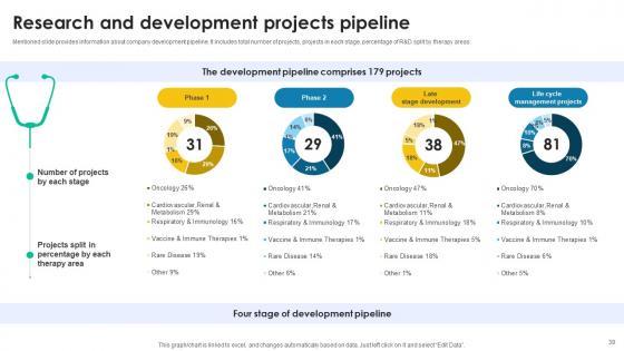 Mentioned slide provides information about company development pipeline. It includes total number of projects, projects in each stage, percentage of RandD split by therapy areas. Find a pre-designed and impeccable Research And Development Projects Pipeline Medical Research And Development Company Profile CP SS V. The templates can ace your presentation without additional effort. You can download these easy-to-edit presentation templates to make your presentation stand out from others. So, what are you waiting for Download the template from Slidegeeks today and give a unique touch to your presentation. Mentioned slide provides information about company development pipeline. It includes total number of projects, projects in each stage, percentage of RandD split by therapy areas.