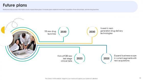 Mentioned slide provides information about company future plans. It includes plans related to investment, acquisition of new clinical trails, and new drug launches. Crafting an eye-catching presentation has never been more straightforward. Let your presentation shine with this tasteful yet straightforward Future Plans Medical Research And Development Company Profile CP SS V template. It offers a minimalistic and classy look that is great for making a statement. The colors have been employed intelligently to add a bit of playfulness while still remaining professional. Construct the ideal Future Plans Medical Research And Development Company Profile CP SS V that effortlessly grabs the attention of your audience Begin now and be certain to wow your customers Mentioned slide provides information about company future plans. It includes plans related to investment, acquisition of new clinical trails, and new drug launches.