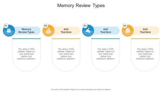 Introducing our well-designed Memory Review Types In Powerpoint And Google Slides Cpb. This PowerPoint design presents information on topics like Memory Review Types. As it is predesigned it helps boost your confidence level. It also makes you a better presenter because of its high-quality content and graphics. This PPT layout can be downloaded and used in different formats like PDF, PNG, and JPG. Not only this, it is available in both Standard Screen and Widescreen aspect ratios for your convenience. Therefore, click on the download button now to persuade and impress your audience. Our Memory Review Types In Powerpoint And Google Slides Cpb are topically designed to provide an attractive backdrop to any subject. Use them to look like a presentation pro.