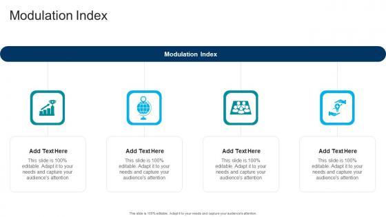 Introducing our well designed Modulation Index In Powerpoint And Google Slides Cpb This PowerPoint design presents information on topics like Modulation Index As it is predesigned it helps boost your confidence level. It also makes you a better presenter because of its high quality content and graphics. This PPT layout can be downloaded and used in different formats like PDF, PNG, and JPG. Not only this, it is available in both Standard Screen and Widescreen aspect ratios for your convenience. Therefore, click on the download button now to persuade and impress your audience. Our Modulation Index In Powerpoint And Google Slides Cpb are topically designed to provide an attractive backdrop to any subject. Use them to look like a presentation pro.