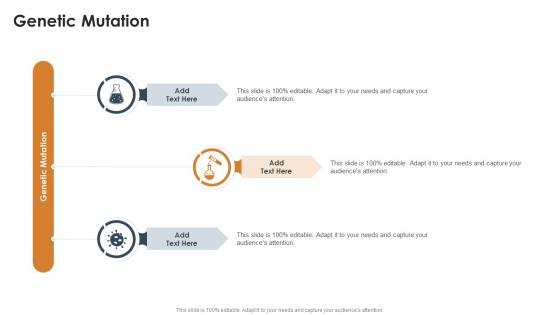 Introducing our well designed Genetic Mutation In Powerpoint And Google Slides Cpb This PowerPoint design presents information on topics like Genetic Mutation As it is predesigned it helps boost your confidence level. It also makes you a better presenter because of its high quality content and graphics. This PPT layout can be downloaded and used in different formats like PDF, PNG, and JPG. Not only this, it is available in both Standard Screen and Widescreen aspect ratios for your convenience. Therefore, click on the download button now to persuade and impress your audience. Our Genetic Mutation In Powerpoint And Google Slides Cpb are topically designed to provide an attractive backdrop to any subject. Use them to look like a presentation pro.