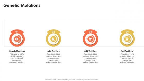 Introducing our well-designed Genetic Mutations In Powerpoint And Google Slides Cpb. This PowerPoint design presents information on topics like Genetic Mutations. As it is predesigned it helps boost your confidence level. It also makes you a better presenter because of its high-quality content and graphics. This PPT layout can be downloaded and used in different formats like PDF, PNG, and JPG. Not only this, it is available in both Standard Screen and Widescreen aspect ratios for your convenience. Therefore, click on the download button now to persuade and impress your audience. Our Genetic Mutations In Powerpoint And Google Slides Cpb are topically designed to provide an attractive backdrop to any subject. Use them to look like a presentation pro.